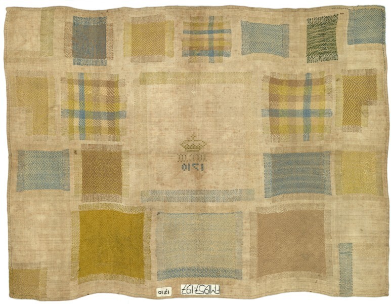 Stoplap met stoppen van verschillend formaat, gemerkt M.C.M. 1710