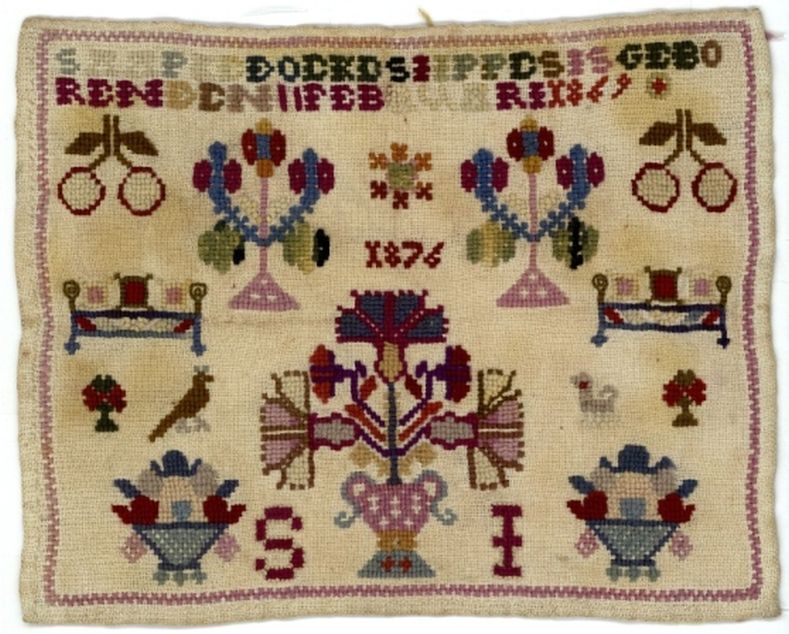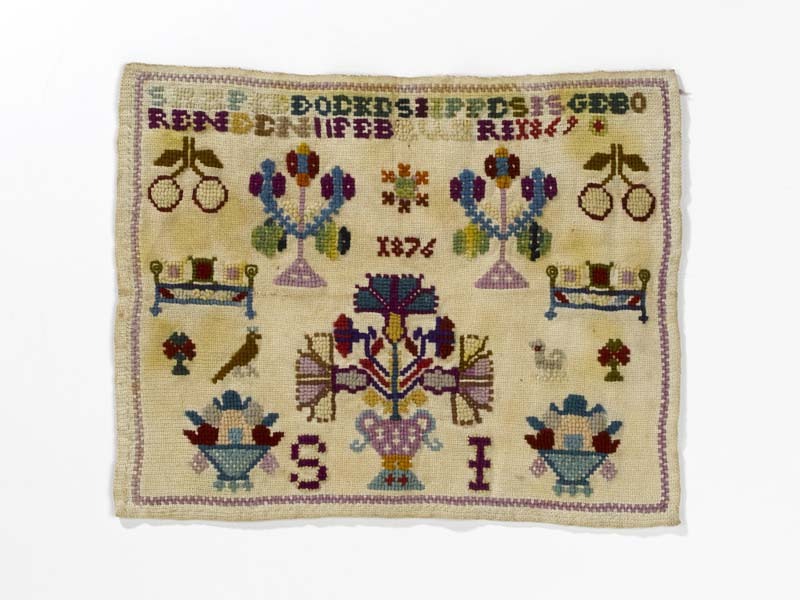 Textielwerken, meestal van fijne stof, waarop door vrouwen en meisjes in verschillende steken is geborduurd en die bedoeld zijn om in te lijsten. Ze werden doorgaans gemaakt door beginnelingen om hun vaardigheden te tonen. Kenmerkend zijn een combinatie van steken, motieven, letters en verzen, en vaak de voltooiingsdatum en de naam van de borduurster. (AAT-Ned)