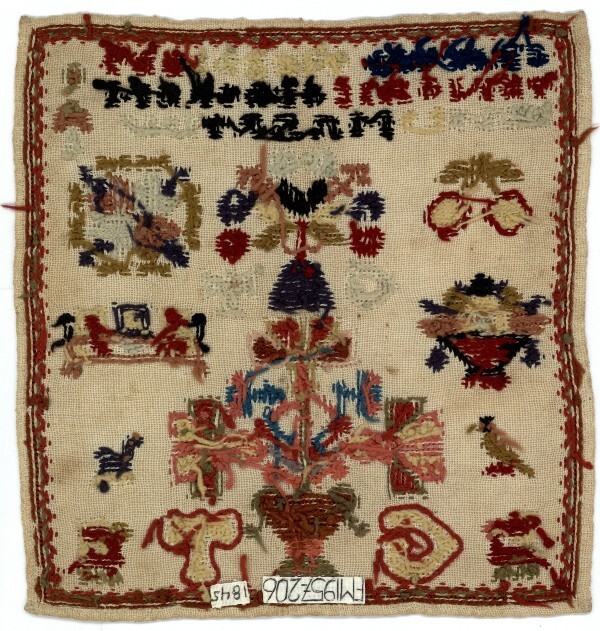 Textielwerken, meestal van fijne stof, waarop door vrouwen en meisjes in verschillende steken is geborduurd en die bedoeld zijn om in te lijsten. Ze werden doorgaans gemaakt door beginnelingen om hun vaardigheden te tonen. Kenmerkend zijn een combinatie van steken, motieven, letters en verzen, en vaak de voltooiingsdatum en de naam van de borduurster. (AAT-Ned)