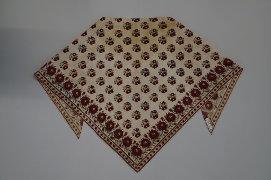 Driekante doek bedrukt met boeketjes en een rozenrand