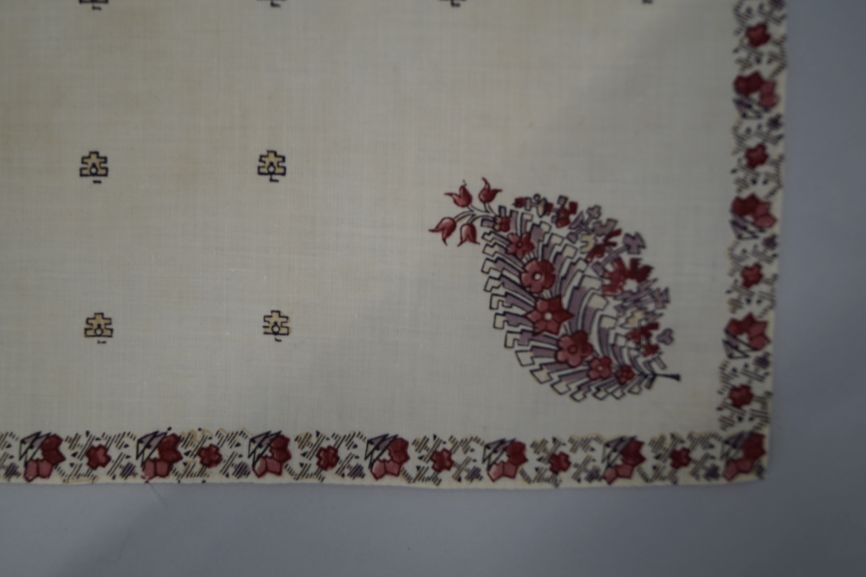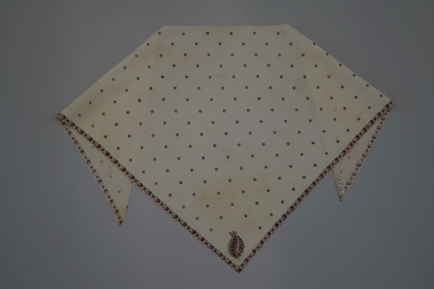 Witte driekante bedrukte katoenen doek met kleine hoekige motiefjes