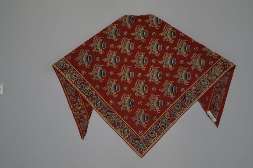 Rode driekante katoenen doek bedrukt met mandmotieven met bloemen