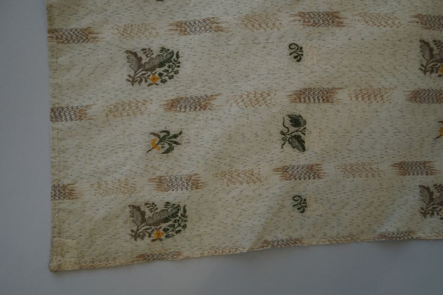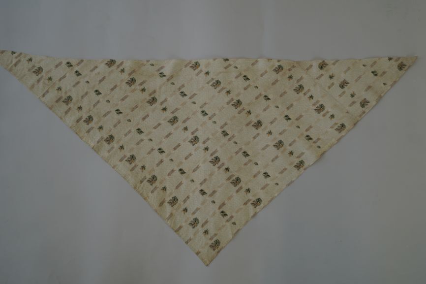 Witte katoenen driekante sjaal of tipdoek met strepen en ingeweven bloempatroon
