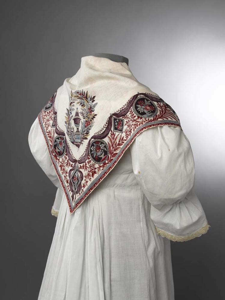 1) hals- of hoofddoek die met een tip (uiteinde) op de rug wordt vastgespeld. https://data.cultureelerfgoed.nl/term/id/cht/00c8692f-af9f-490f-b4ec-ec045b417f30