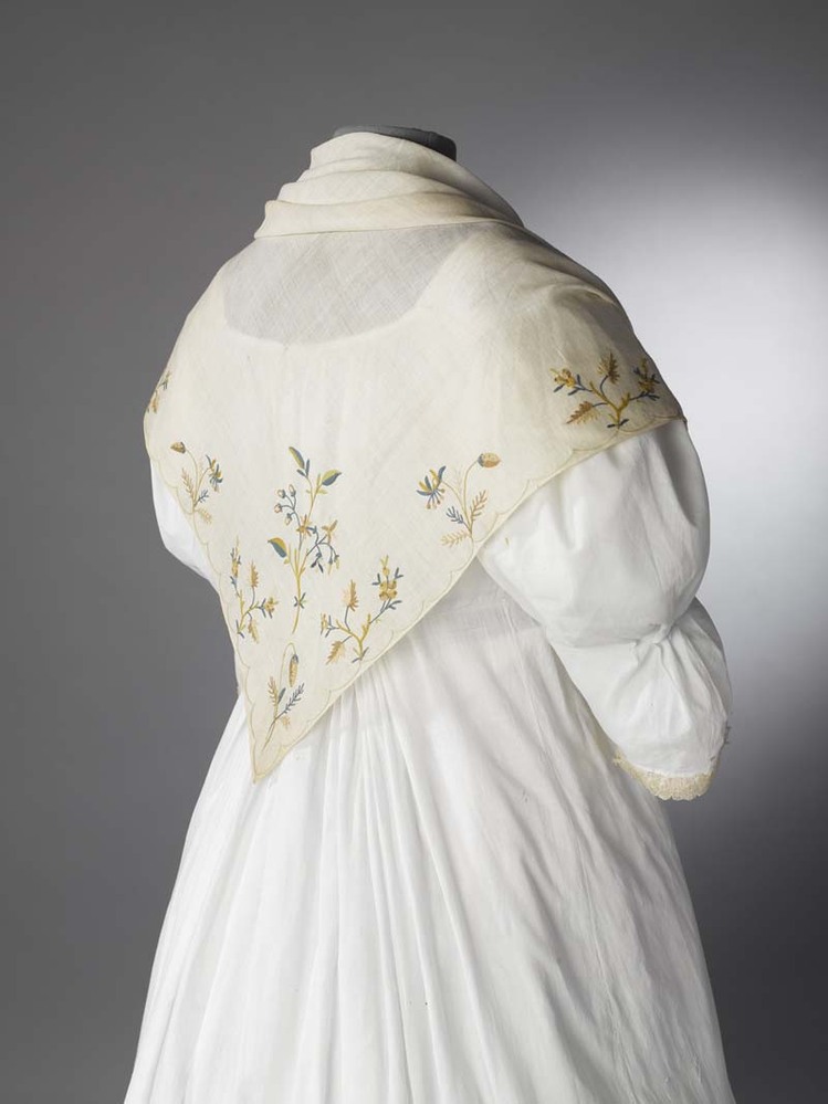 Fichu getamboereerd met dof zijden garen, alles in naruralistische vormen