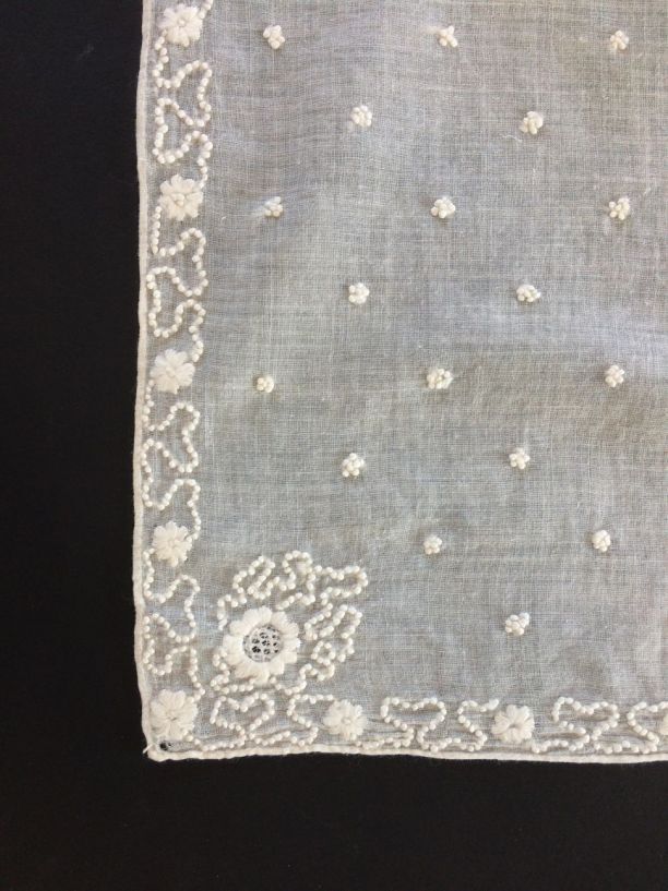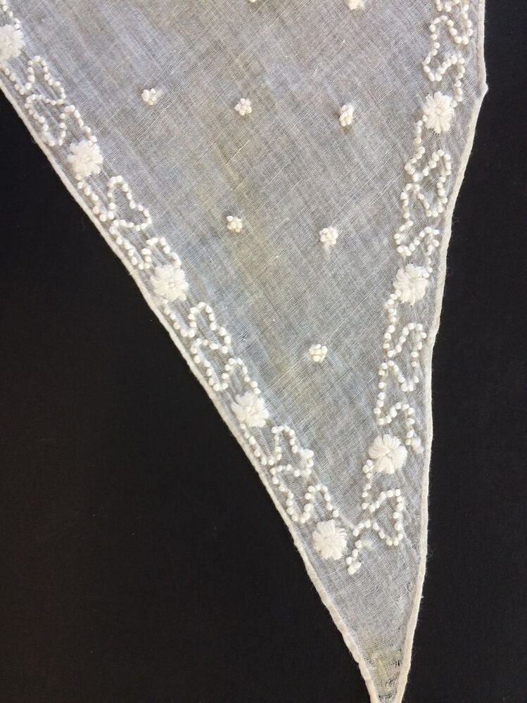 Witte fichu met in de rechte hoek een grote bloem, wit borduurwerk