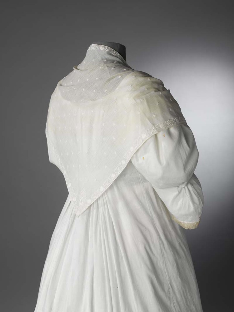 1) hals- of hoofddoek die met een tip (uiteinde) op de rug wordt vastgespeld. https://data.cultureelerfgoed.nl/term/id/cht/00c8692f-af9f-490f-b4ec-ec045b417f30