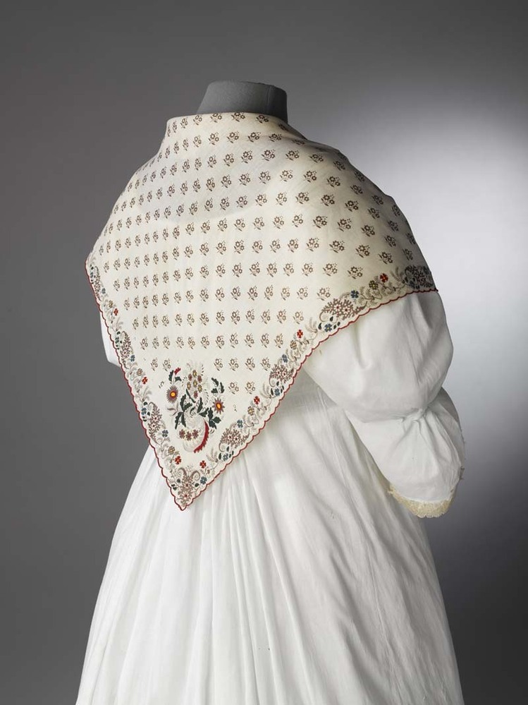 1) hals- of hoofddoek die met een tip (uiteinde) op de rug wordt vastgespeld. https://data.cultureelerfgoed.nl/term/id/cht/00c8692f-af9f-490f-b4ec-ec045b417f30