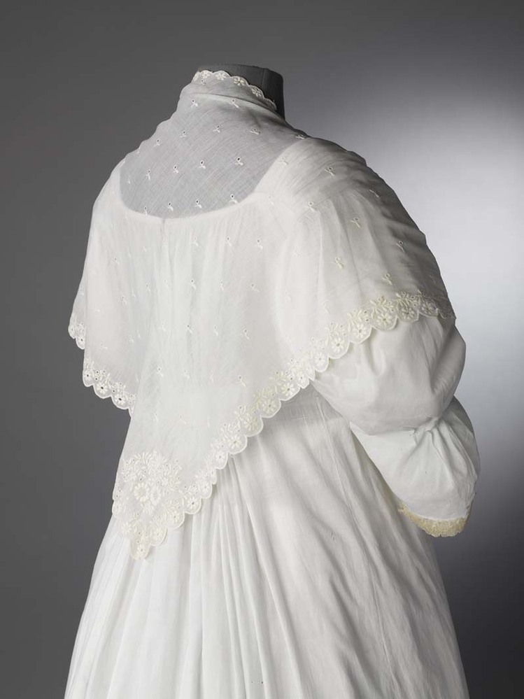 Fichu van neteldoek, met open werk versierd, geheel met wit gewerkt golfrandje