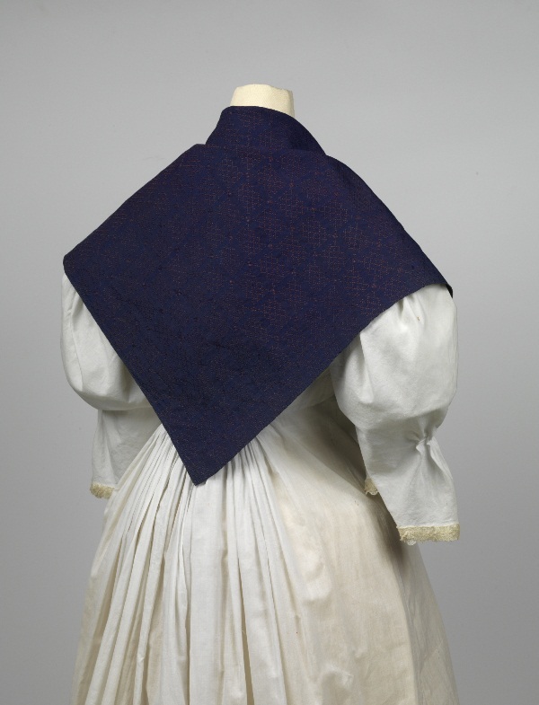 1) hals- of hoofddoek die met een tip (uiteinde) op de rug wordt vastgespeld. https://data.cultureelerfgoed.nl/term/id/cht/00c8692f-af9f-490f-b4ec-ec045b417f30