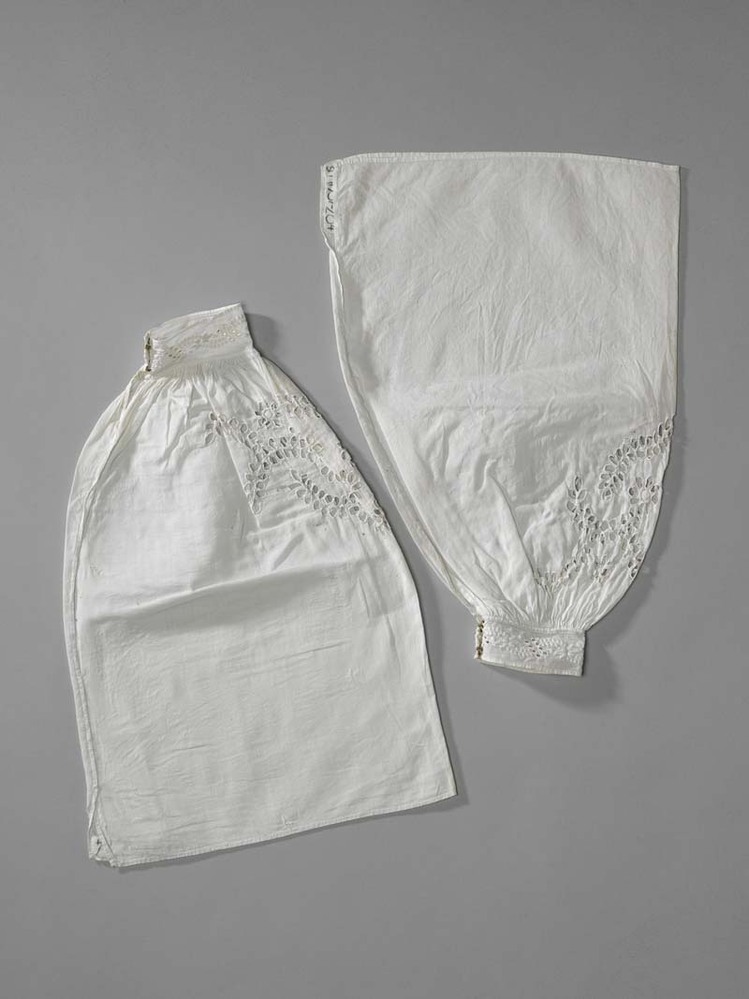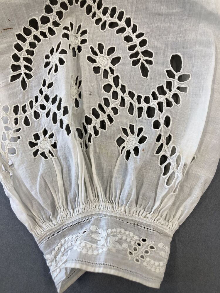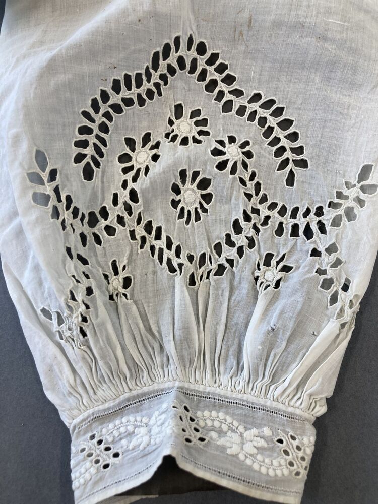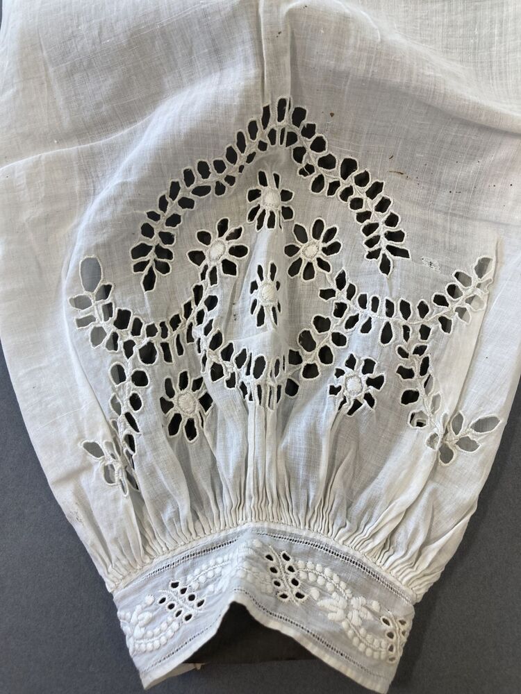 Paar mouwen van zeer fijn katoen, open borduurwerk, het manchetje met Frans borduurwerk