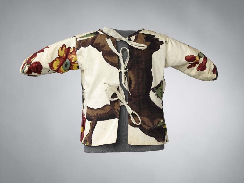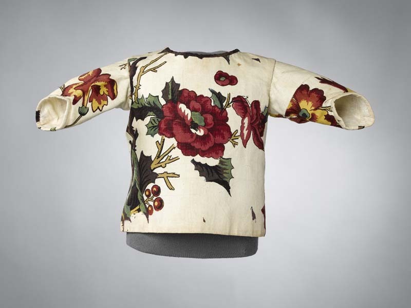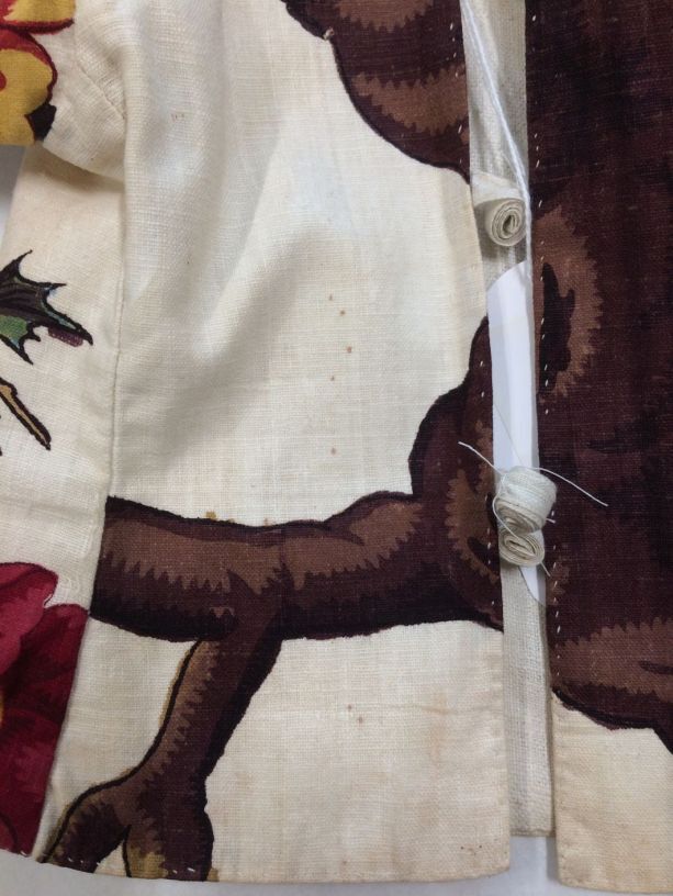 Bedrukt katoenen babyjakje, met fragment van een bloeiende boom op witte grond