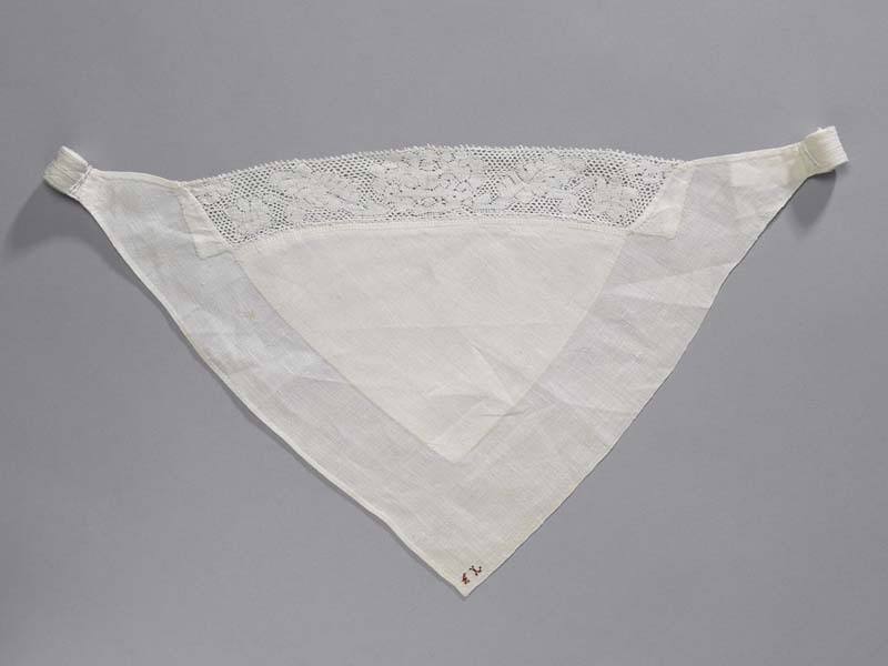 Flepje van wit linnen, deels dubbel, met kloskant