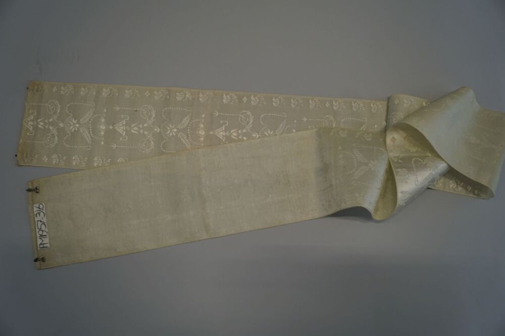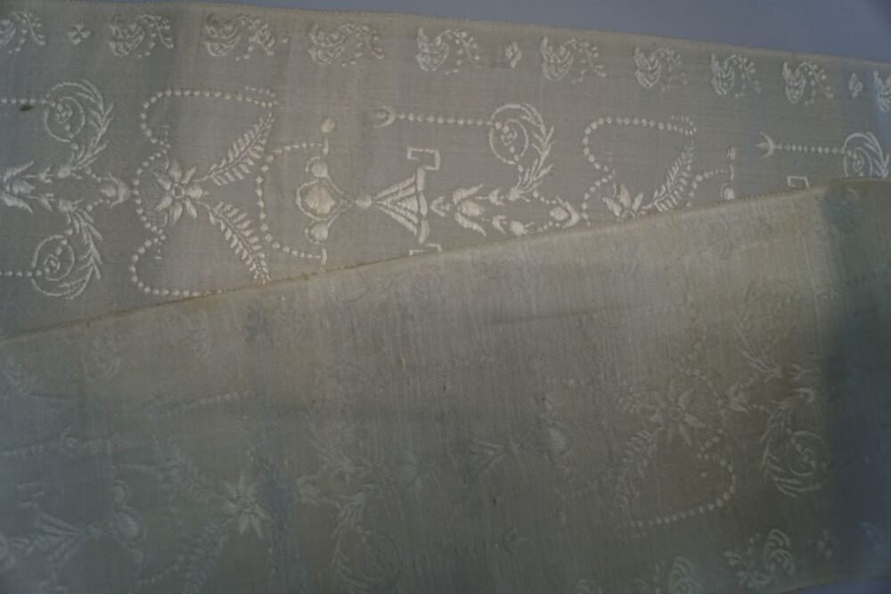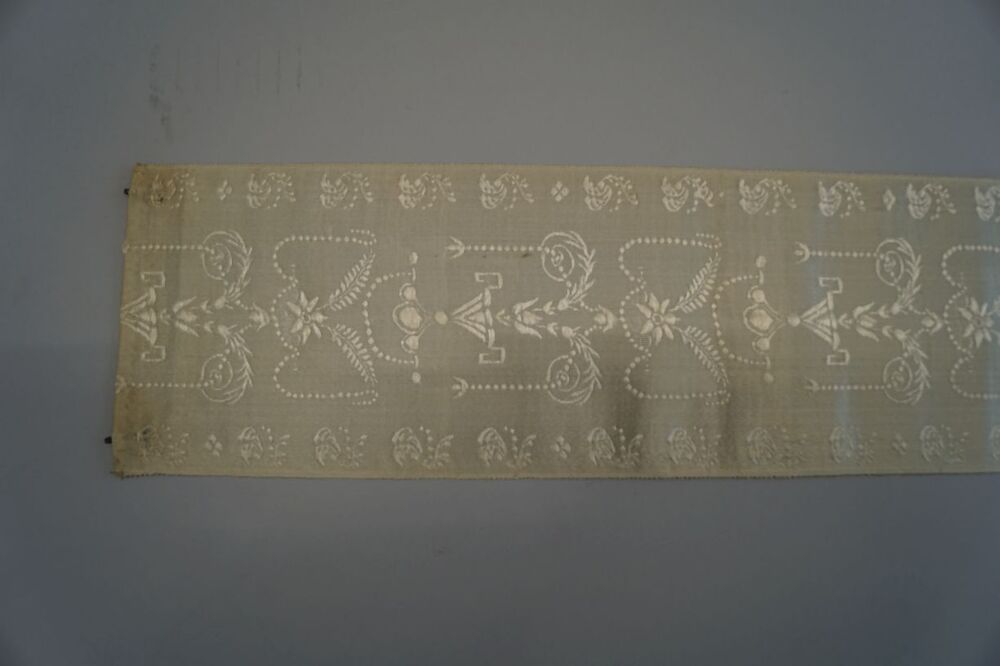 Zijden zonhoed lint in lichtblauw met vazen, bloemen en guirlandes