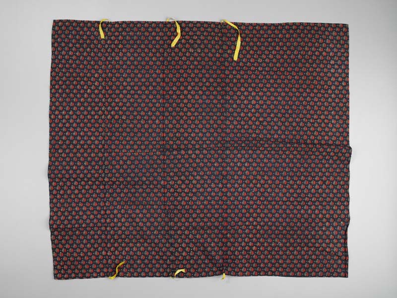 Pakdoek van bedrukte katoen donkerblauwe grond met gestileerd rood-geel bloemetje