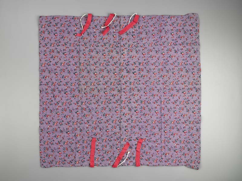 Pakdoek van bedrukte katoen, lila ondergrond, met bloemetjes in frisse kleuren versierd