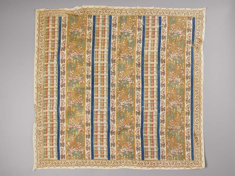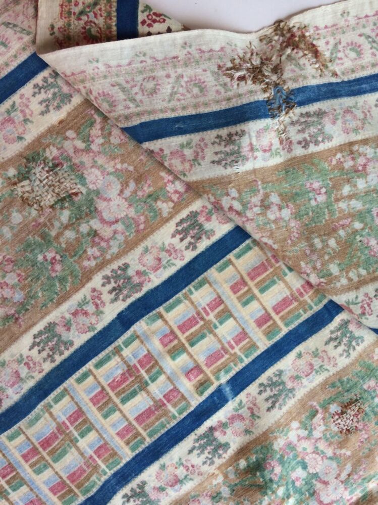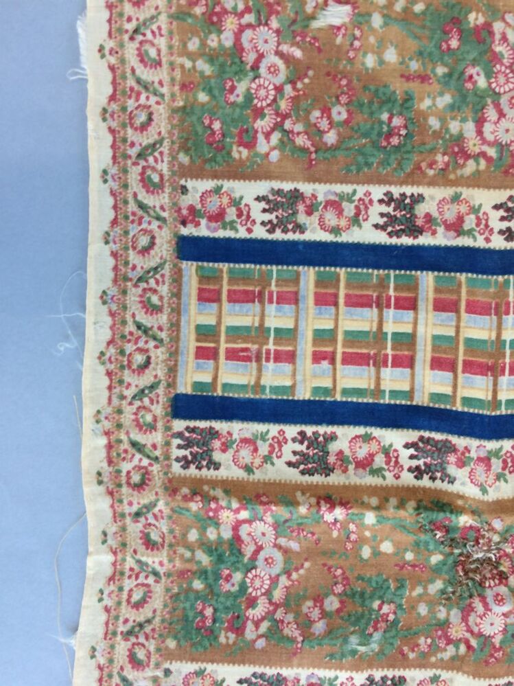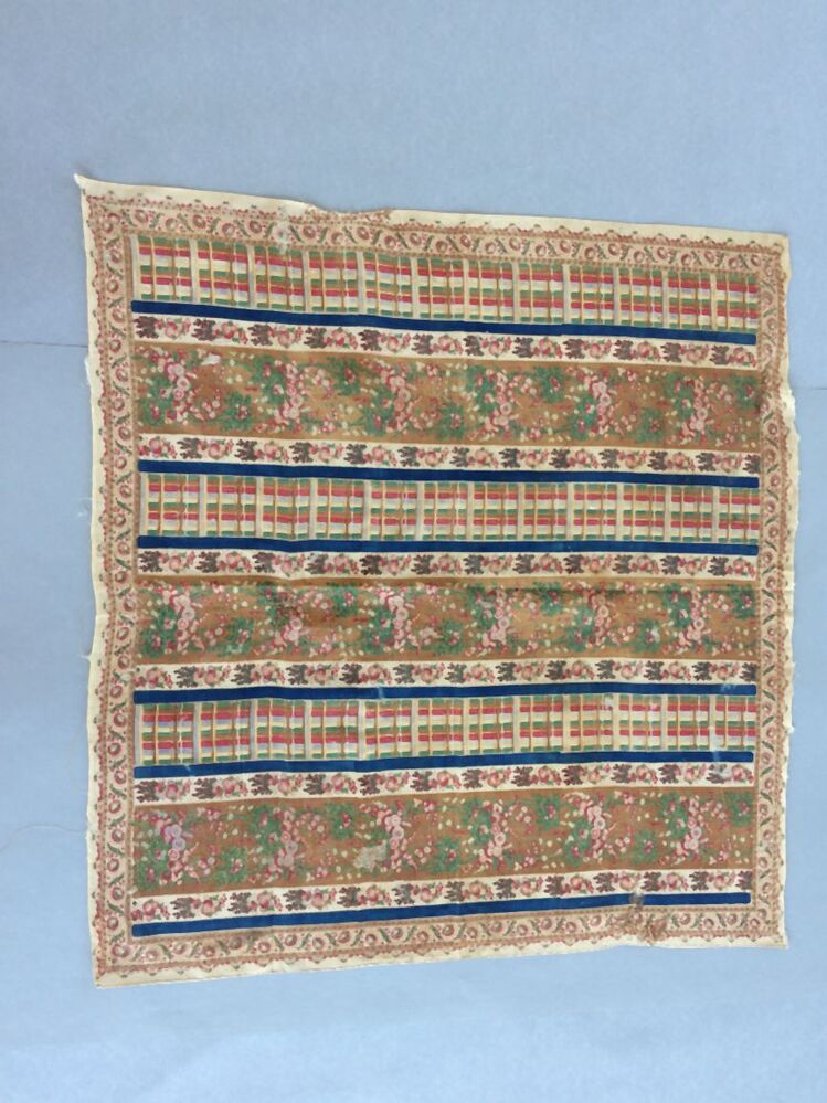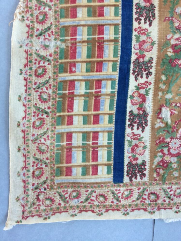 Wollen sjaal, bedrukt met banen met gekleurde strepen en bloemen