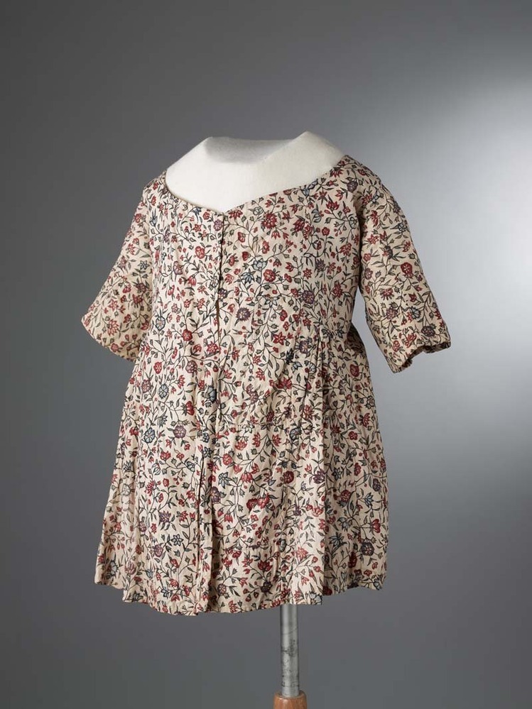 Sitsen kinderjakje met hoge taille, stof met dicht patroon van dunne bloemranken op witte grond
