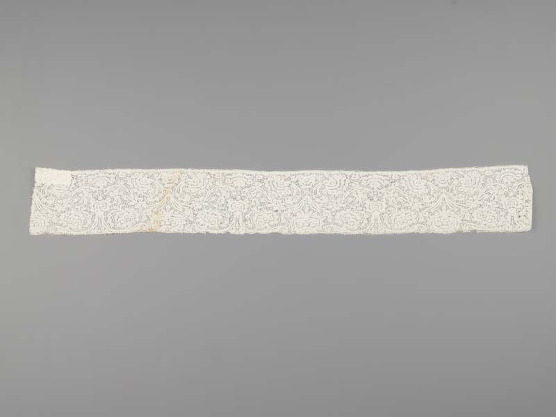 Strook kantkloswerk van Hollandse kloskant met dicht patroon van ovale bloemen en ranken
