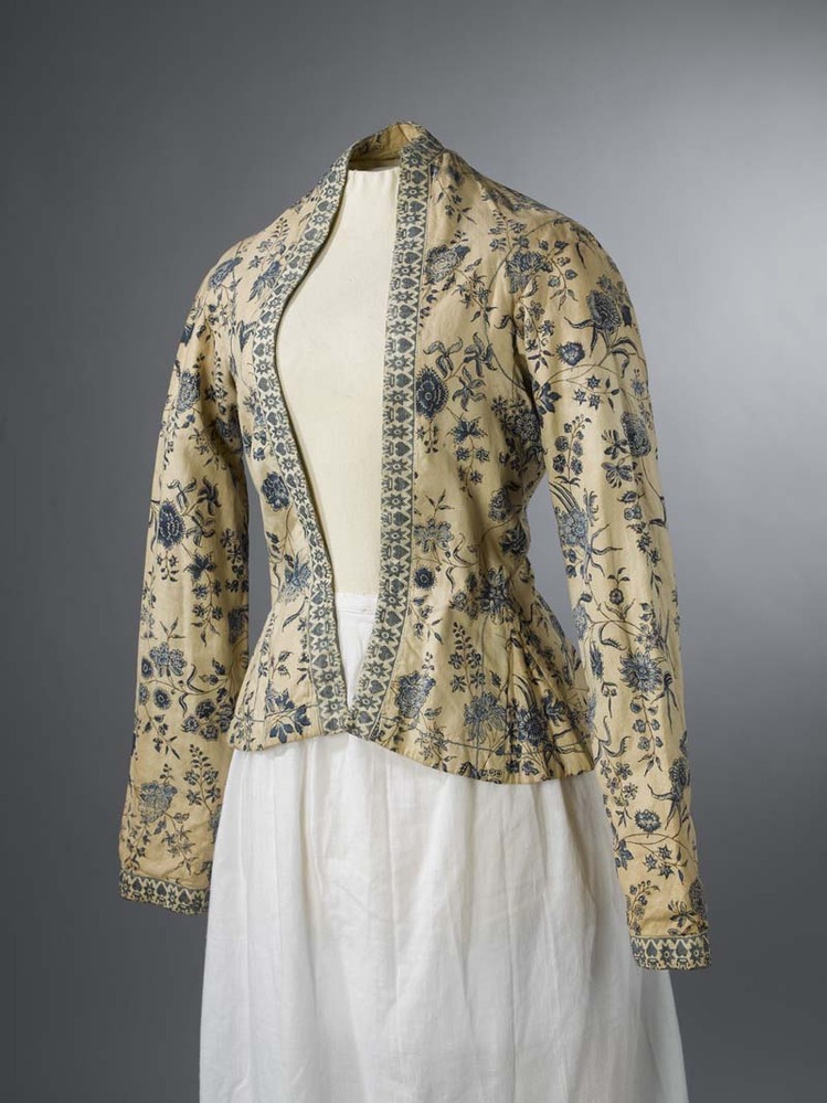 Sitsen Hindeloper kassakijntje met motieven op witte grond en met blauwe motieven