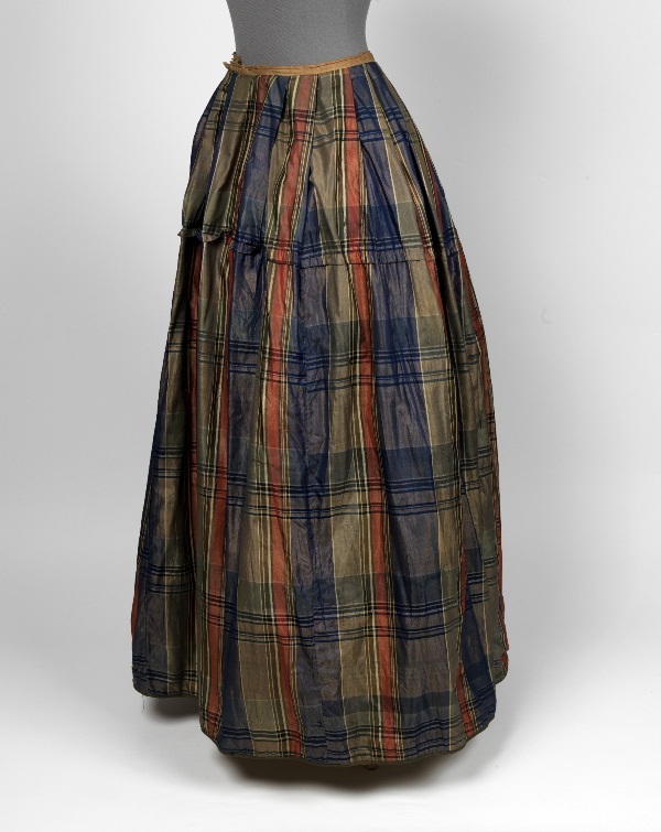 Rok van geruite taftzijde, banen in rood, blauw, geel, grijs, groen, gevoerd met linnen