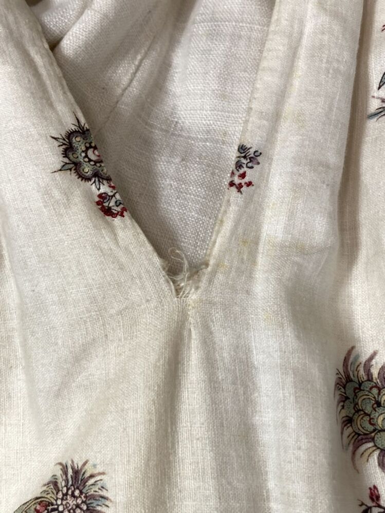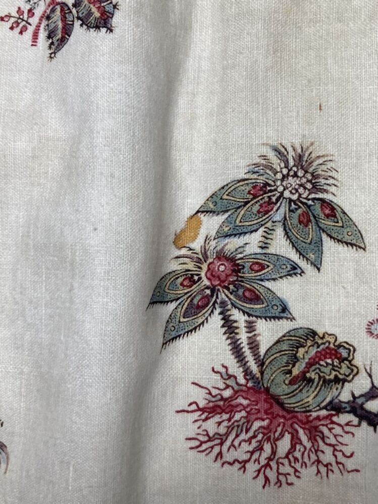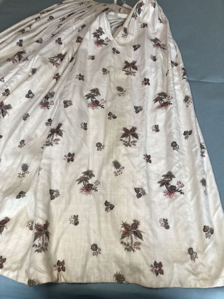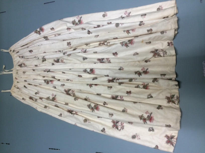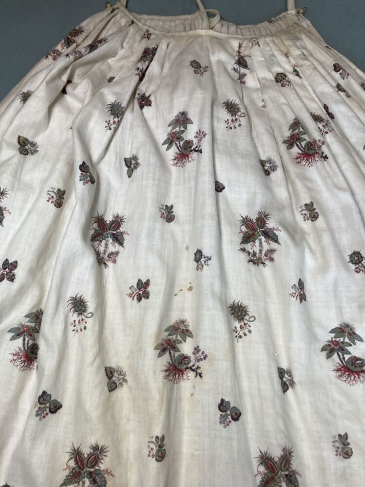 Bedrukt katoenen vrouwenrok, met afwisselend klein en groot bloemmotief met stekelige omtrek op witte grond