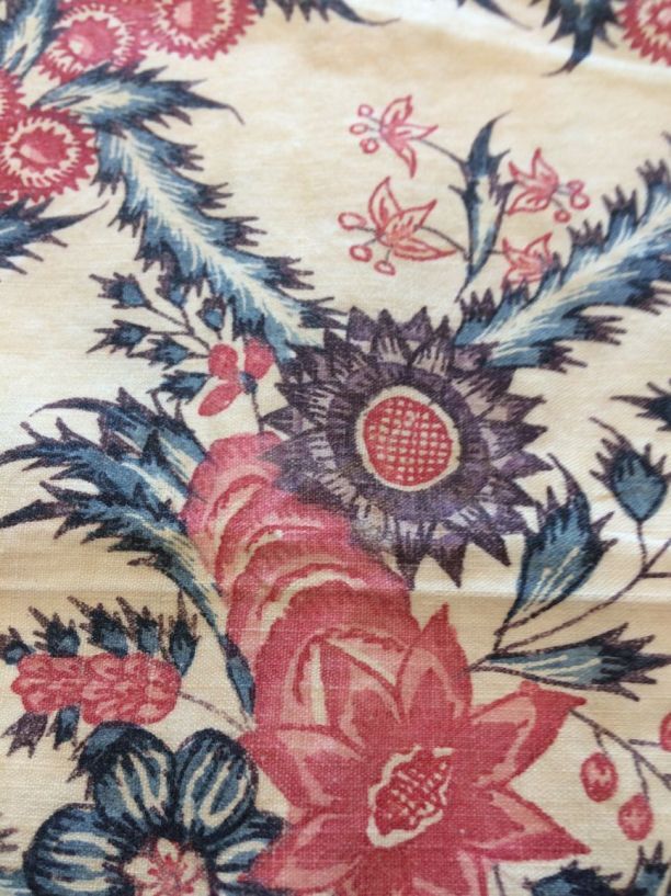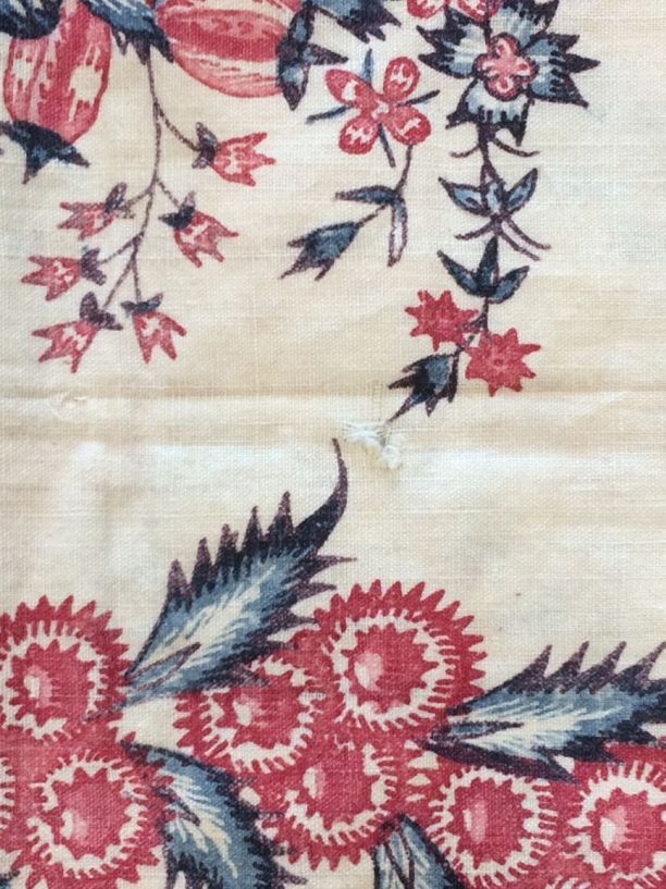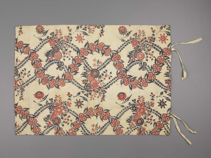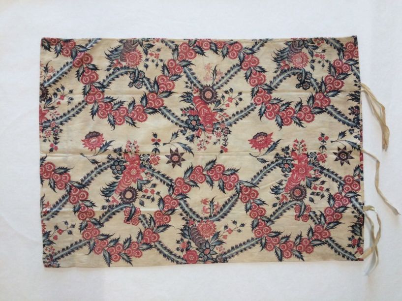 Sitsen sloop met door elkaar slingerende guirlande en geveerde ranken op witte grond