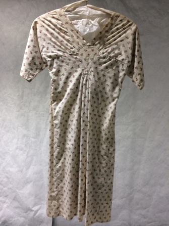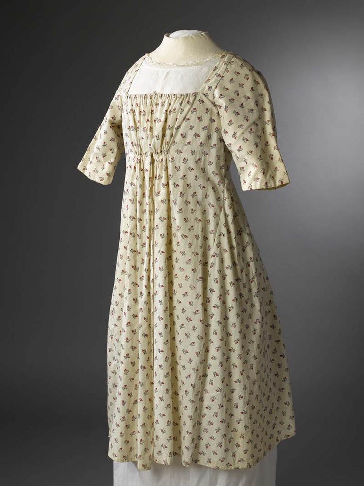 Empire bedrukt katoenen vrouwenjak, met met strooimotief van eikeltakjes op witte grond