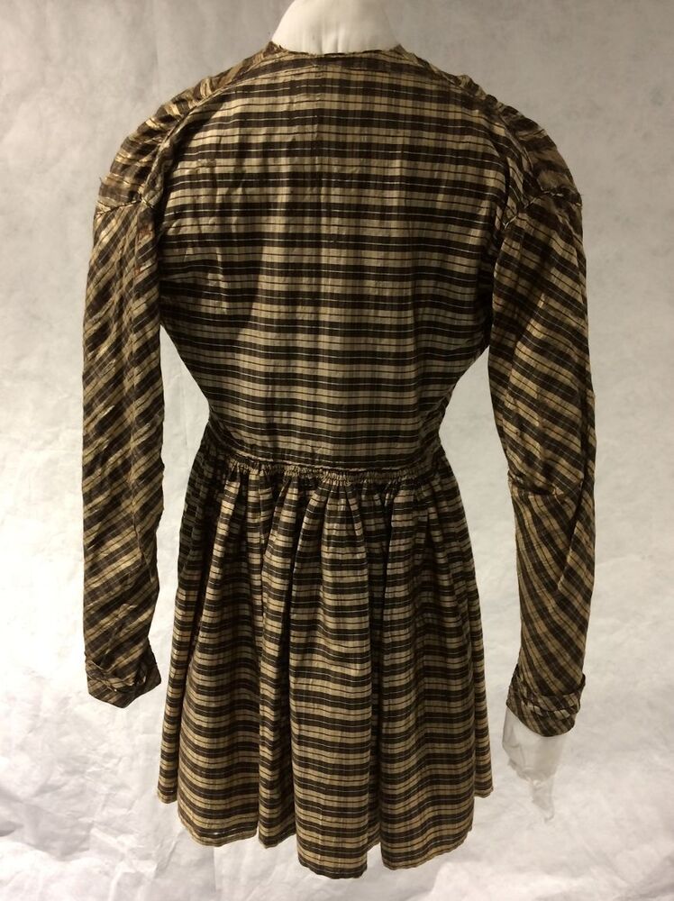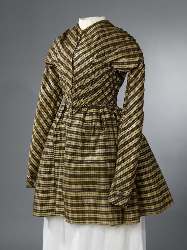 Schootjak van geel-bruine geruite zijde met lange mouwen