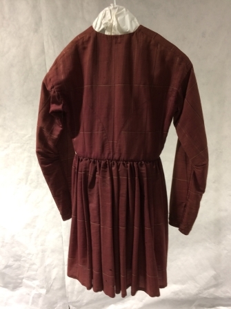 Schootjak van oudroze mohair met fantasie ruit van zijde met lange slanke mouwen