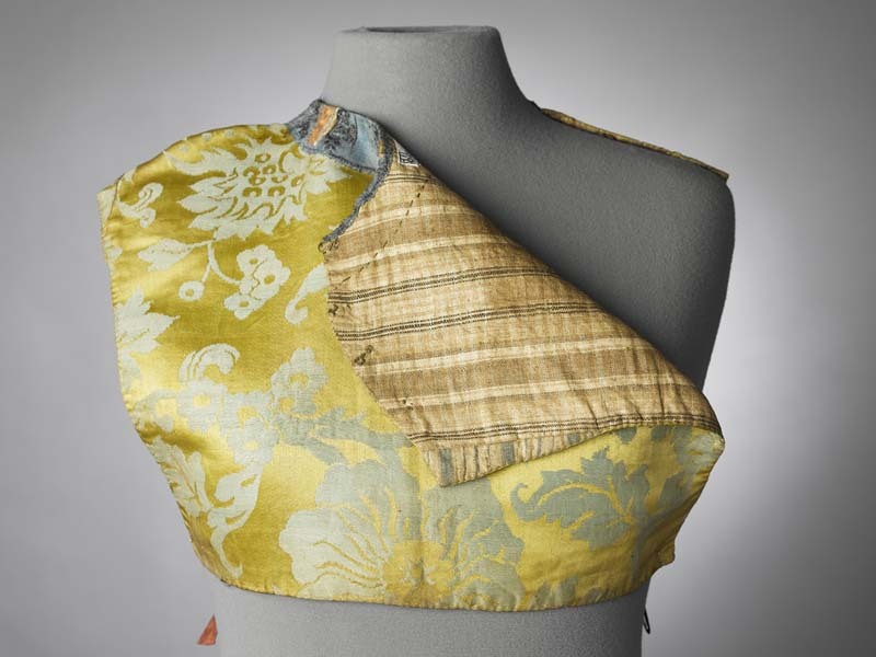 Kroplap van zijden damast gevoerd met geruit katoen in beige bruin en wit