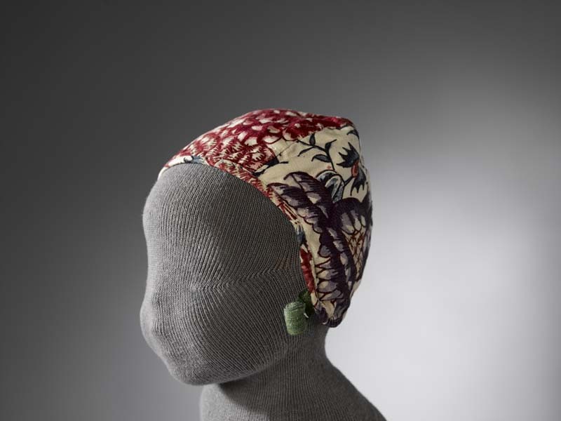 Sitsen meisjesmuts, met grote bloemen op witte grond