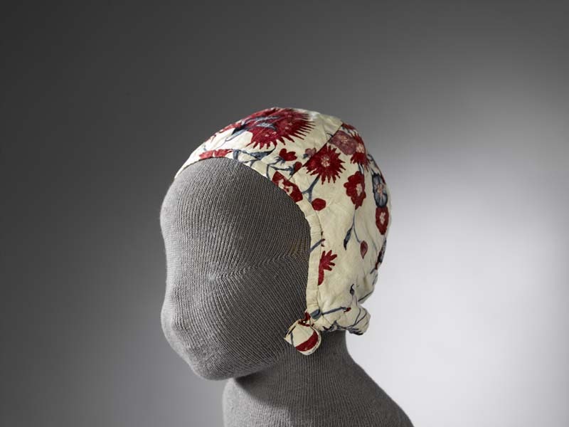Sitsen jongensmuts, met gestileerde bloemen op witte grond