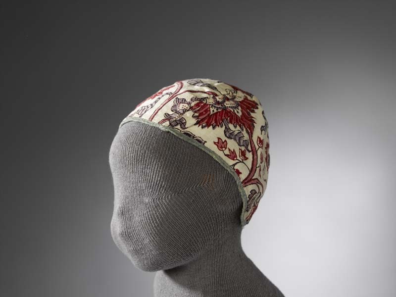 Bedrukt katoenen meisjesmuts, sitspatroon met rode stengels en fantasiebloemen op witte grond