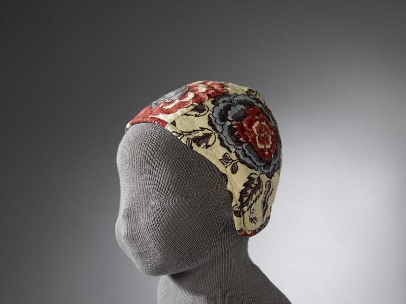 Meisjesmuts, bedrukt katoen met sitspatroon met grote bloemen op witte grond