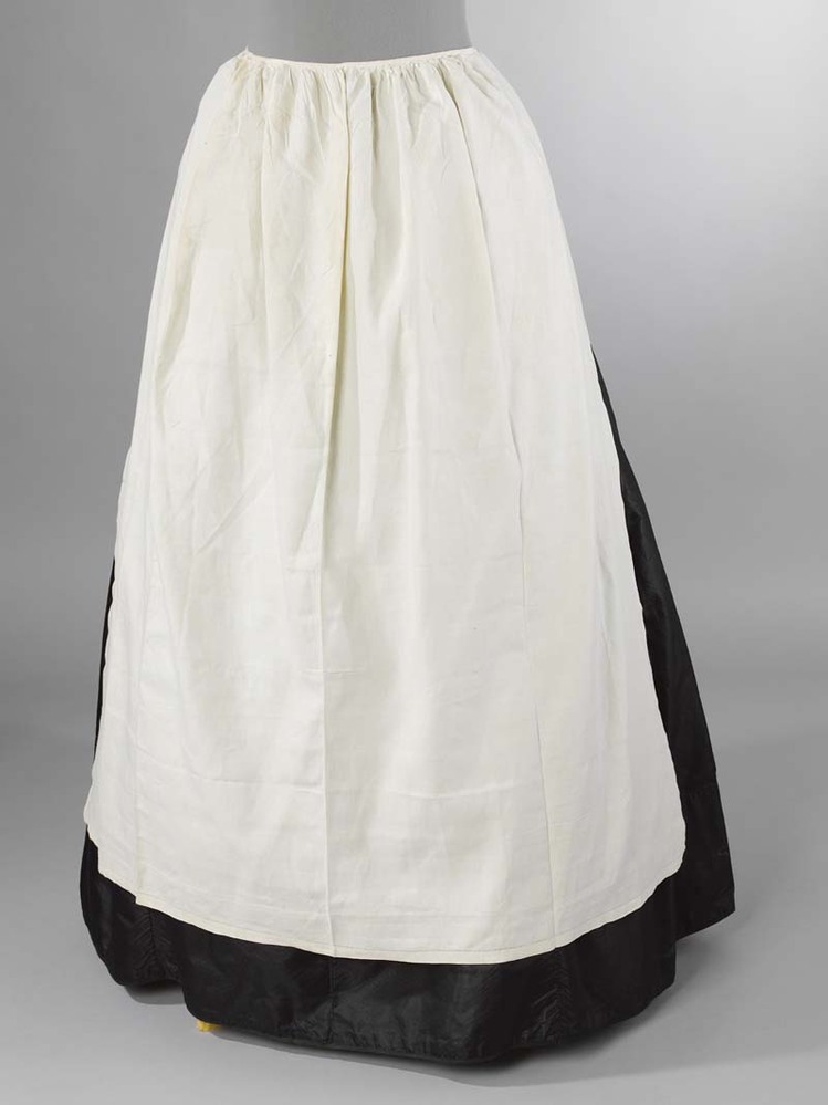 Een schortje van zeer fijn wit linnen, smal opengewerkt randje