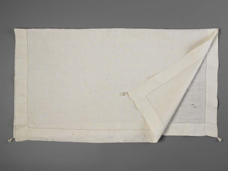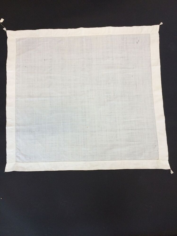 Wit linnen halsdoek met initialen IS en akertjes aan de hoekpunten