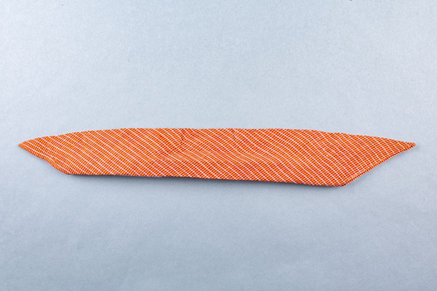 Zondoek voor pop, sterk gesteven, plooisel verdwenen, rood-geel-witte ruit
