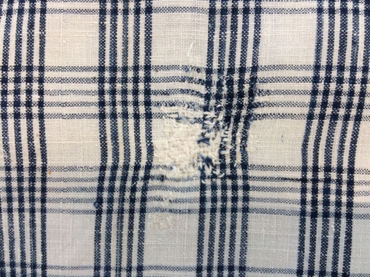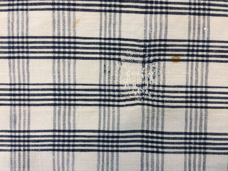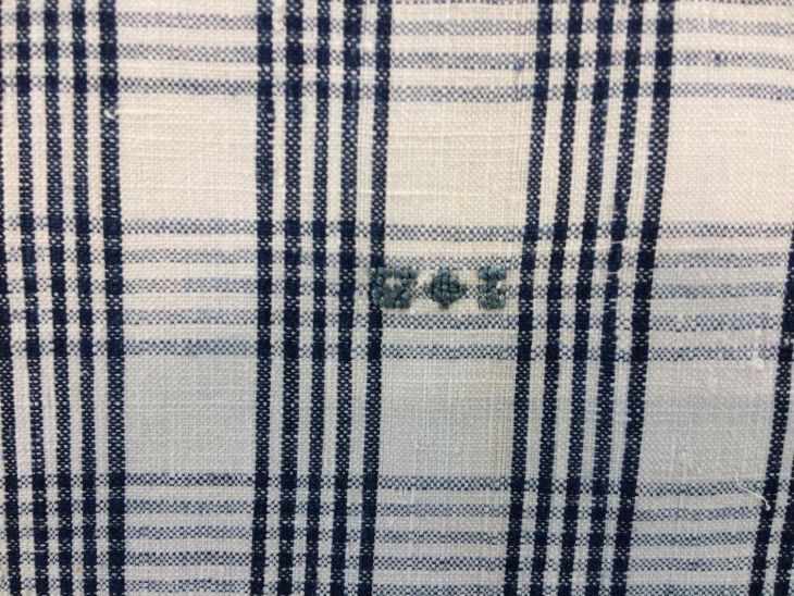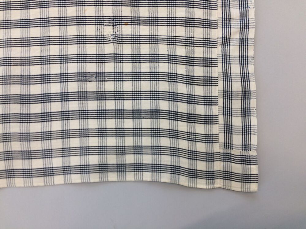 Hindelooper sondook voor de lichte rouw met ingeweven ruit in wit en blauw met initialen I A