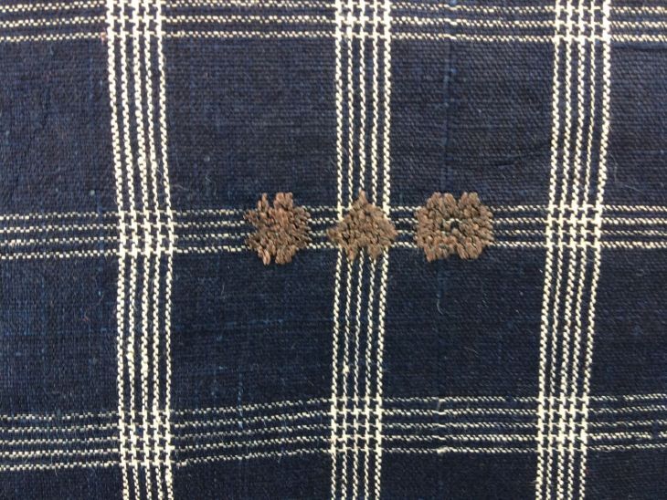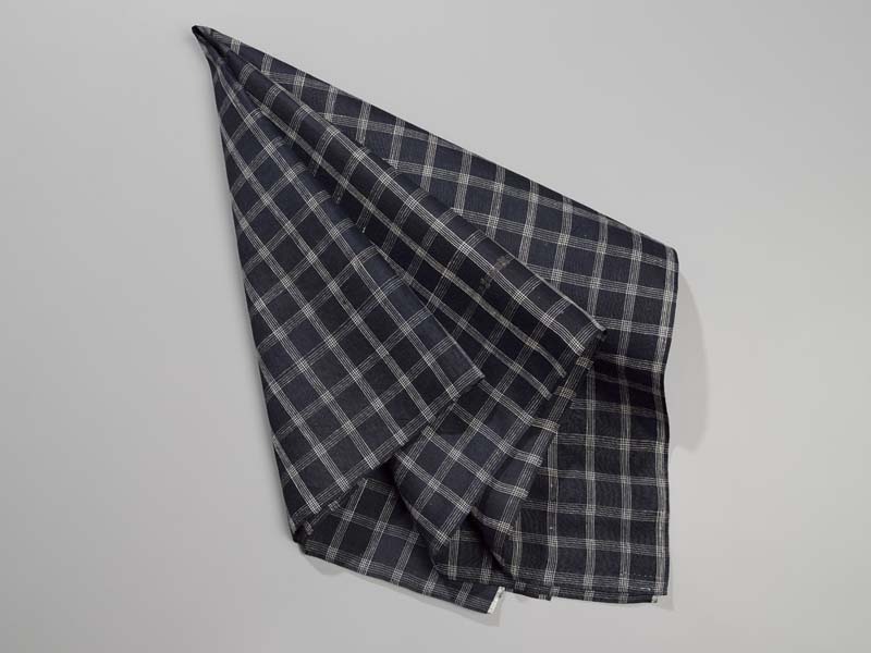 Hindelooper sondook voor de zware rouw met ingeweven ruit in donkerblauw en wit met initialen MK