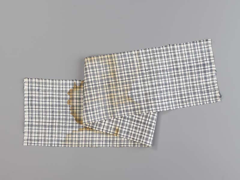Onbewerkte strook wit-blauw geruit katoen voor Hindelooper schort