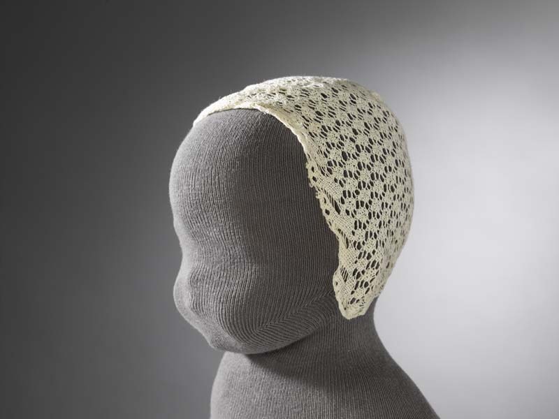 Muts ajour gebreid van witte katoen met noppenpatroon