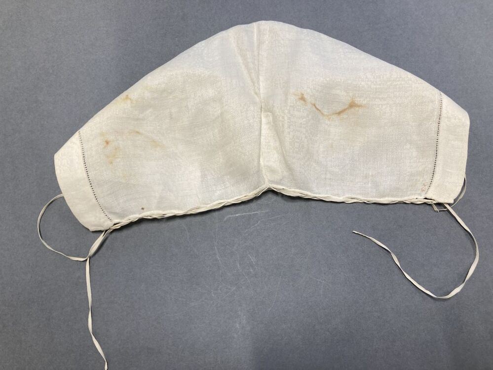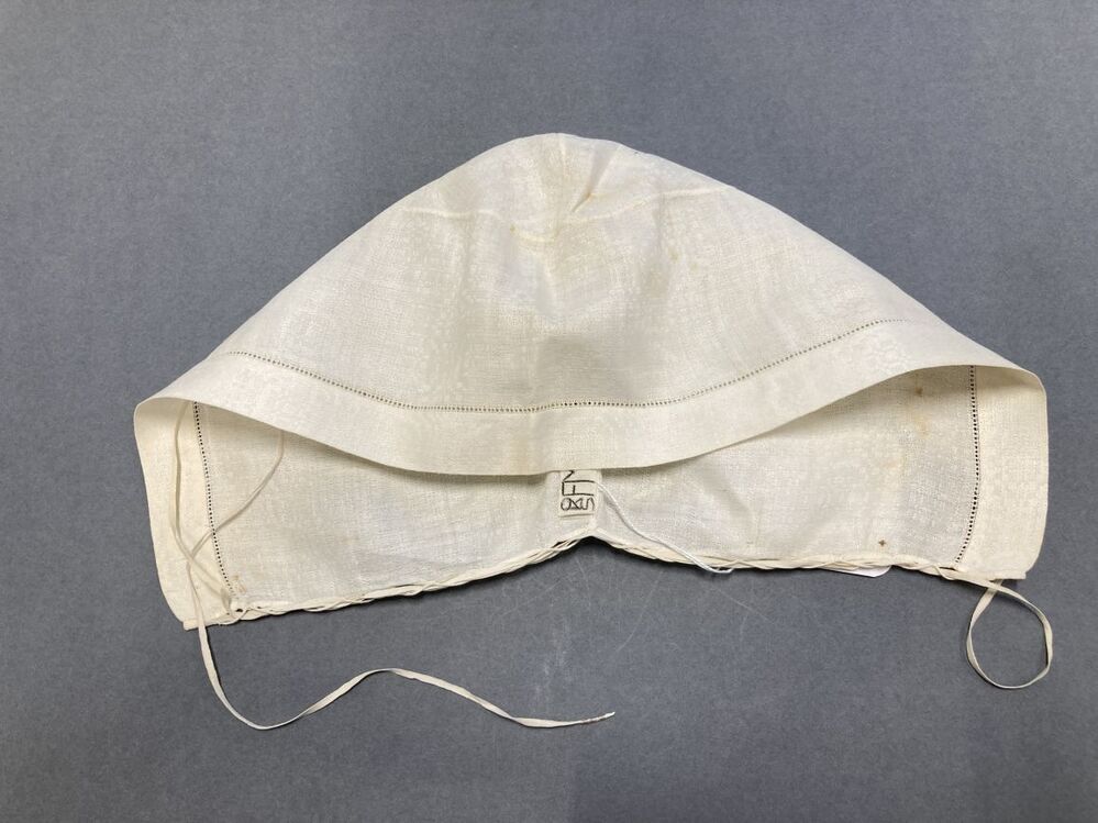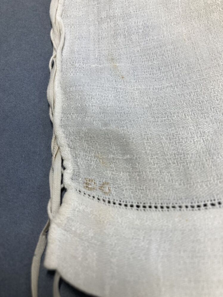 Ondermuts, aan de voorzijde smal open randje, initialen EG