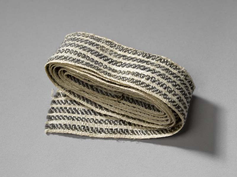 Band van grof linnen weefsel met witte en donkergrijze strepen