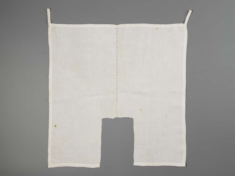 Foarspelder met initialen H G, in het midden een strook kloskant, waaruit een stuk is geknipt, aan de bovenzijde twee lussen