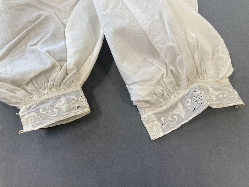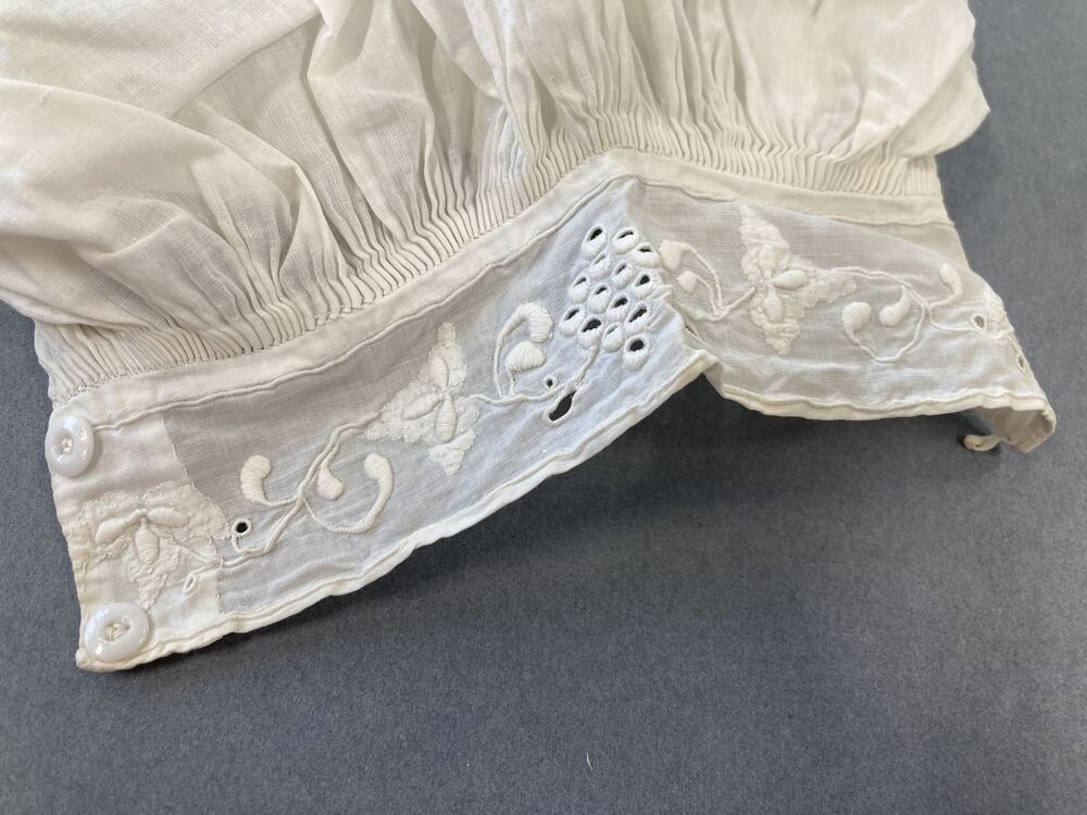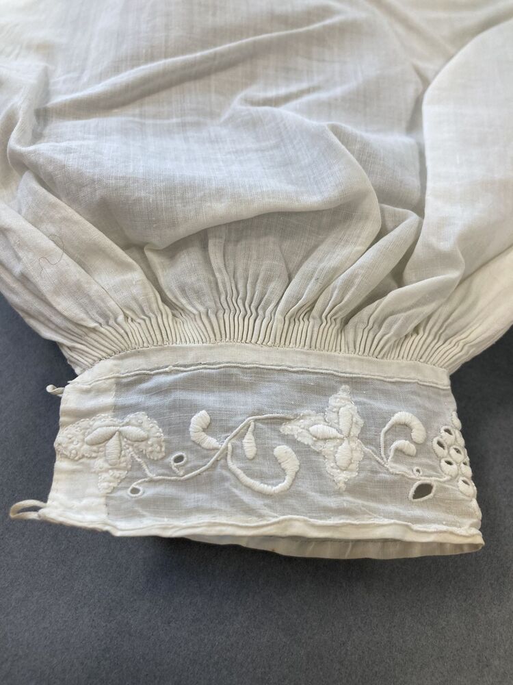 Paar lange mouwen van zeer fijn katoen met rijk geborduurde manchetjes met druiventros.