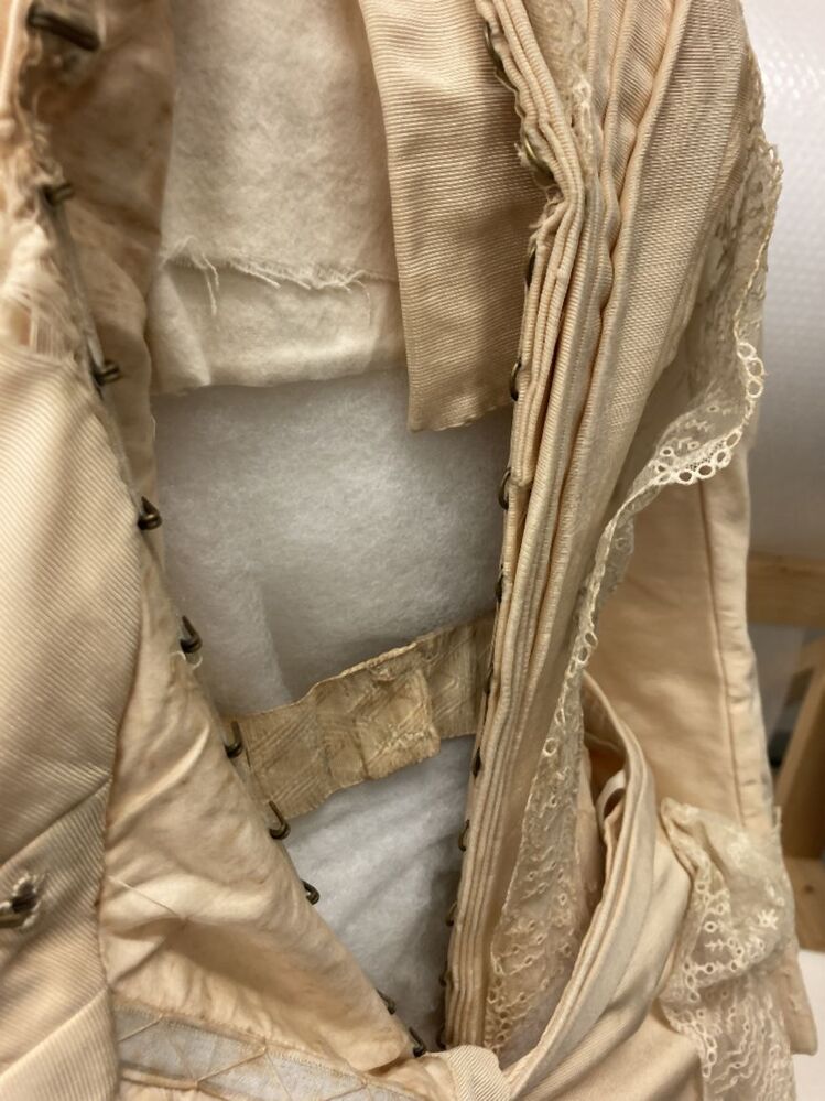 Jak of lijfje, onderdeel van crème zijden bruidskostuum