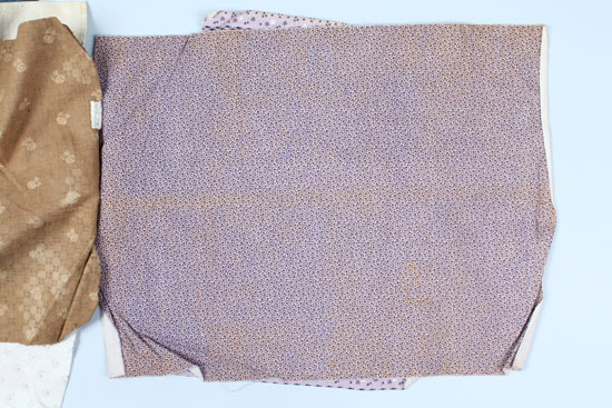 Lap stof bedrukt in twee tinten paars, onderdeel van collectie van twaalf katoenen lappen