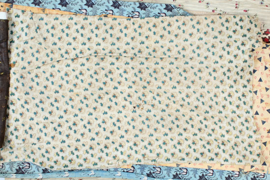 Lap stof bedrukt met geometrische motieven, onderdeel van collectie van tien lappen, merendeels van katoen