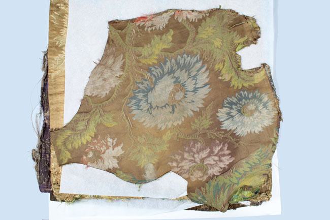 Lap stof, stuk kleding van zijde damast, onderdeel van groep van vier